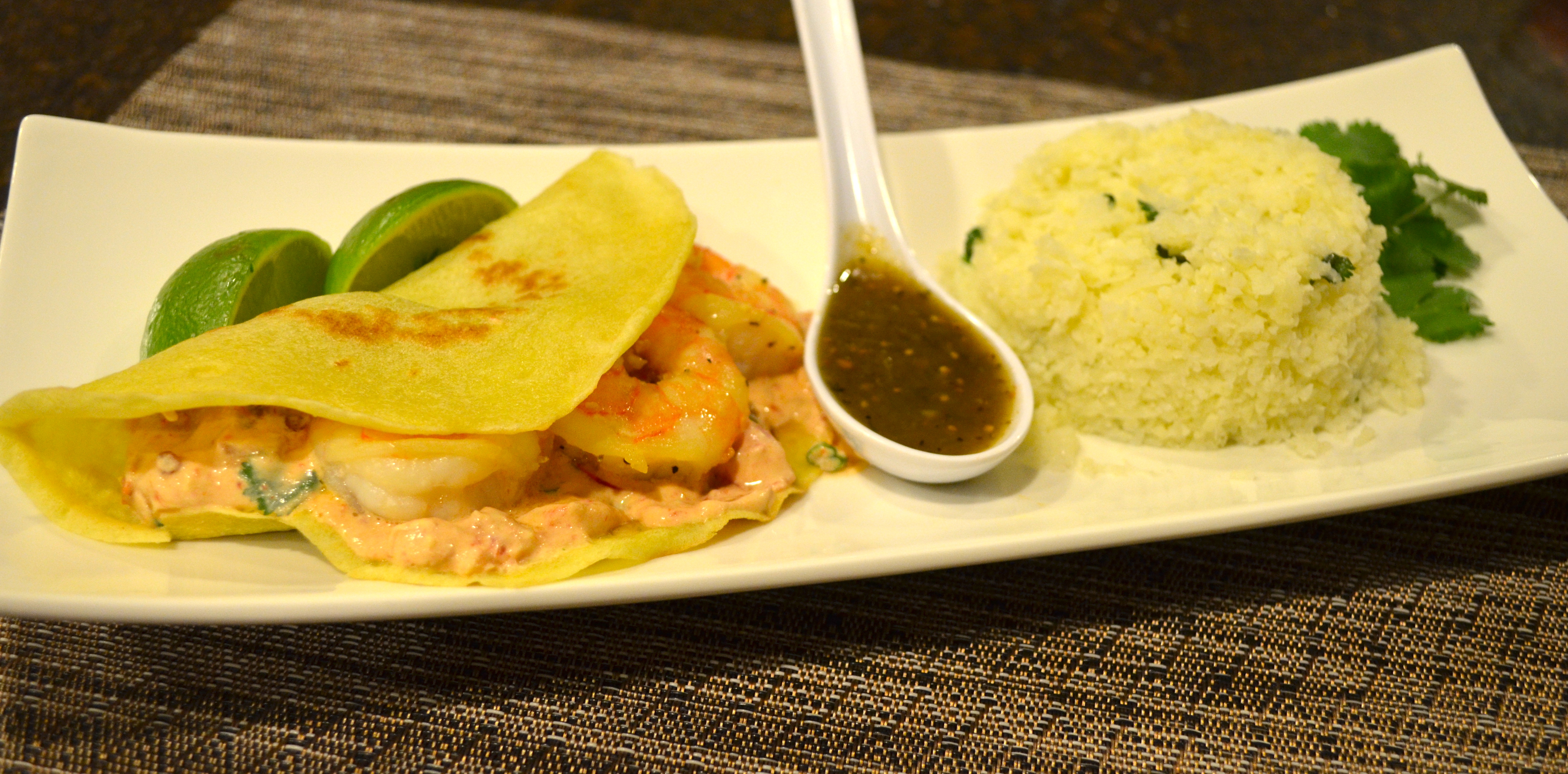 Shrimp Taco with Paleo Tortilla & Cauliflower Rice