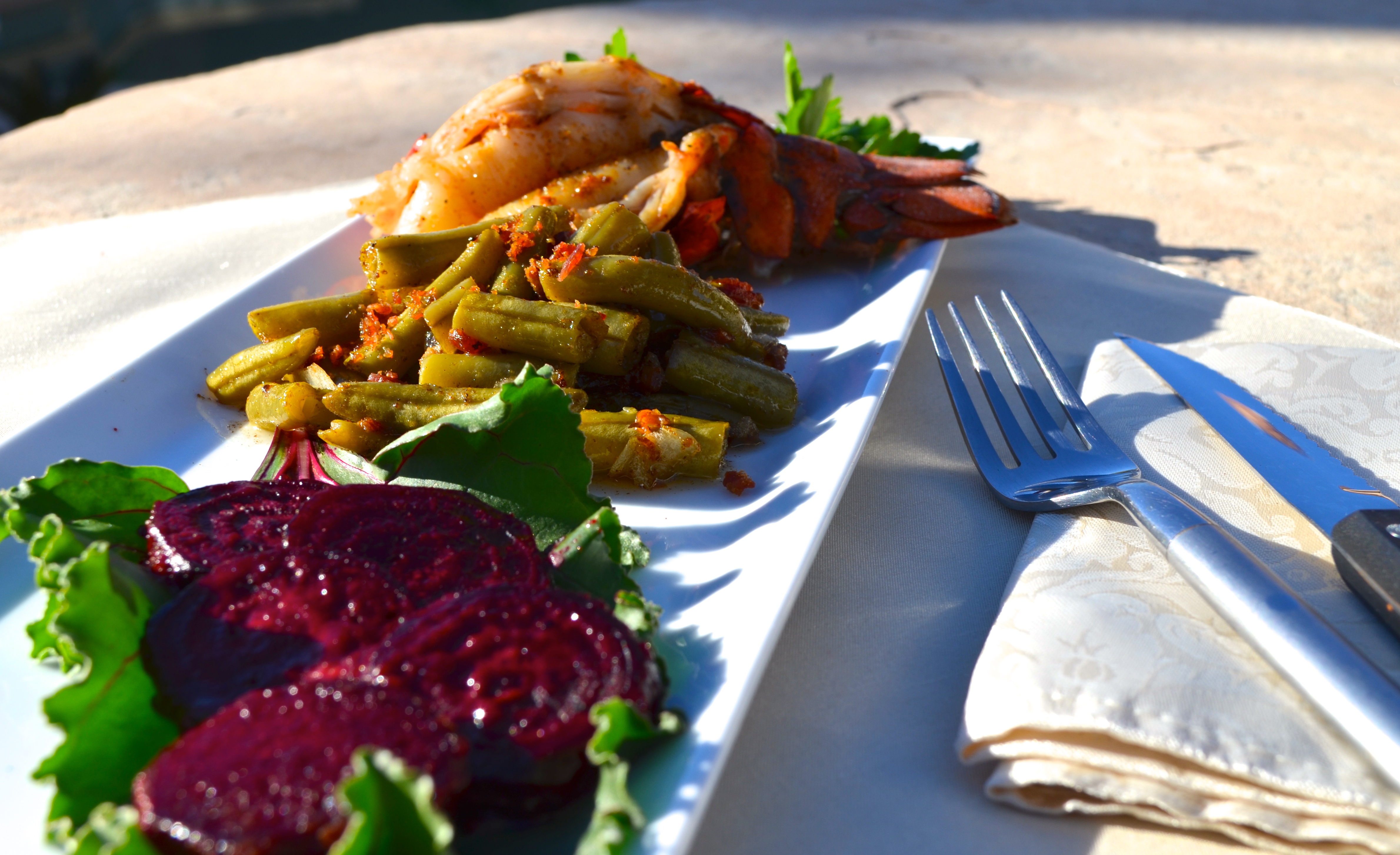 Cajun Lobster with Bacon Green Beans & Honey Dijon Beets